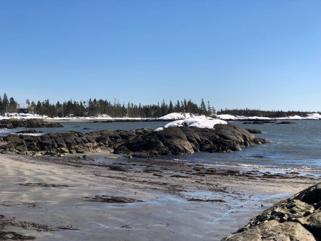 Mom and Sue checked me over and made sure I was okay. I was a bit shaken up, but I wasn’t hurt too badly. Mom picked me up and gave me a big hug to make me feel better. We continued our walk along the beach, enjoying the views of snow on the rocks and the sound of the waves crashing on the shore.